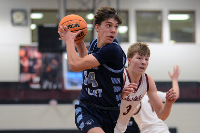 Haxtun is the opposite of Longmont Christian, with only one senior and one junior on its roster. The Fightin’ Bulldogs turned a fifth place finish in the rugged mixed Lower Platte into a strong enough RPI to gain the #1 seed for the District 5 bracket. Haxtun won its first two tournament games by a combined tally of 142-85, and appeared to be in cruise control after keeping Stratton/Liberty scoreless in the first quarter of the championship game. A late flurry by the Knighted Eagles cut the final margin to seven, 66-59. Haxtun has several athletic big men, led by Isaac Andersen and Ryan Tempel, but sophomore guard Owen Knode really drives the team for first year head coach Bryce Bivins.