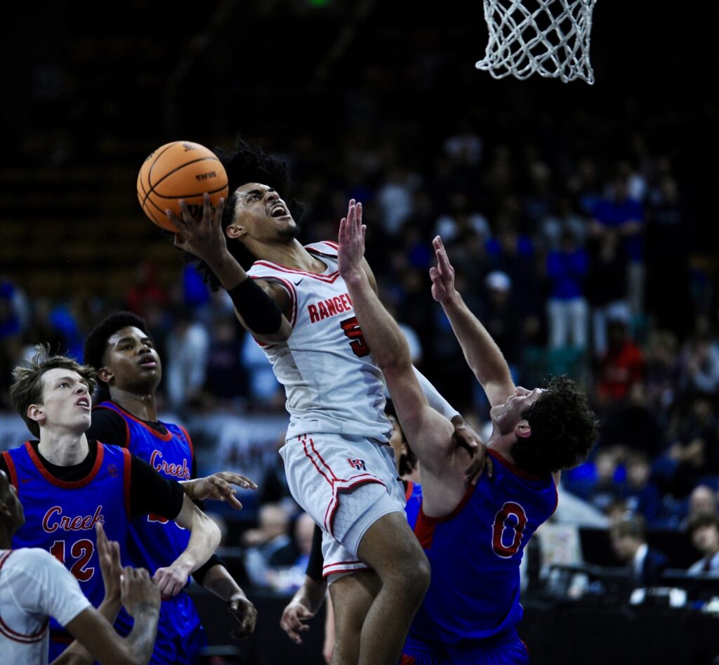 Jacob David got in early foul trouble and Cooper Ellwood struggled to score early, but Davis May was right there to get Rock Canyon a 66-52 over Grandview to advance to the Class 6A boys basketball Final 4.