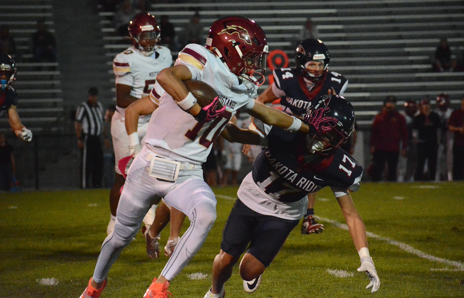 Dakota Ridge’s defense might have its biggest challenge yet in trying to slow down Heritage’s running attack. Senior Mo Thenell had a monster game against Golden rushing for five touchdowns at the NAAC.