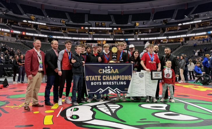 The Fightin’ Reds won the team title with 149 points. Eaton went three-for-three in state title matches, as Hawkins, freshman Parker Wickam (138) and junior Paxton Pettinger (165) all stood atop the podium. Alamosa finished second with 119.5 points and Fort Lupton was third with 100 points.