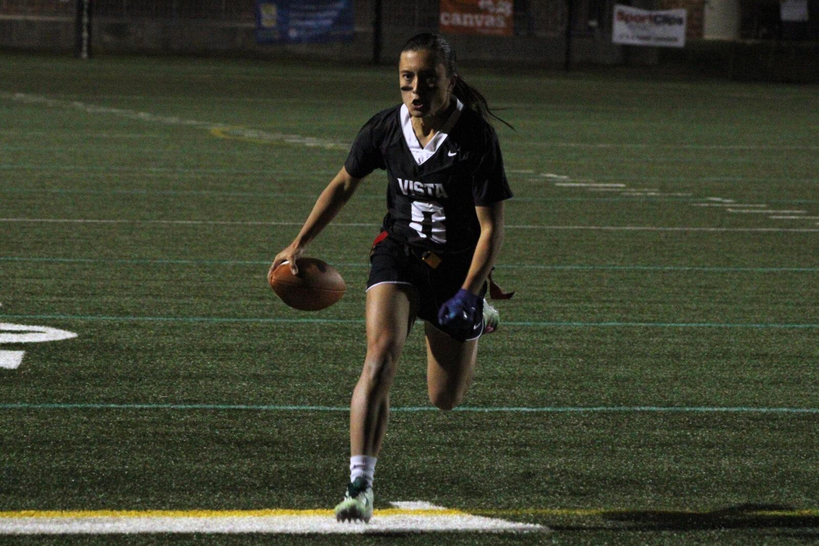 In total, she ran for five scores and threw for two, the second of which went to Looney for Vista’s final score. Senior to senior. Baller to baller.