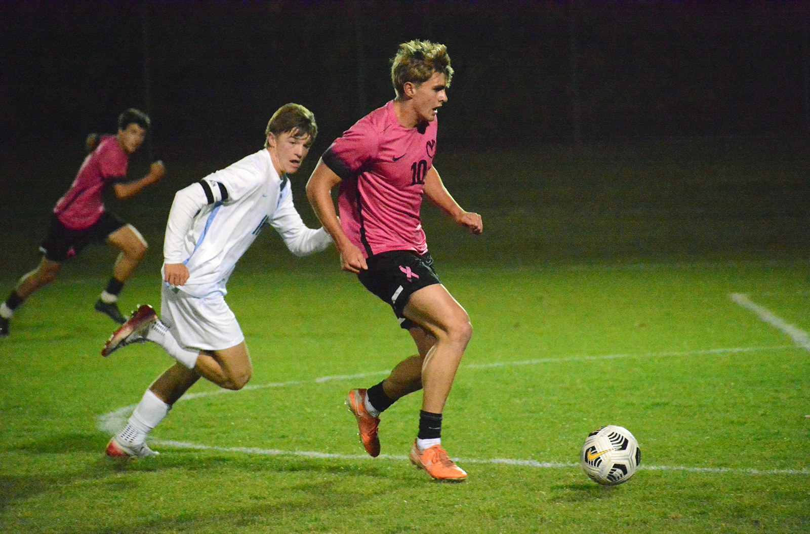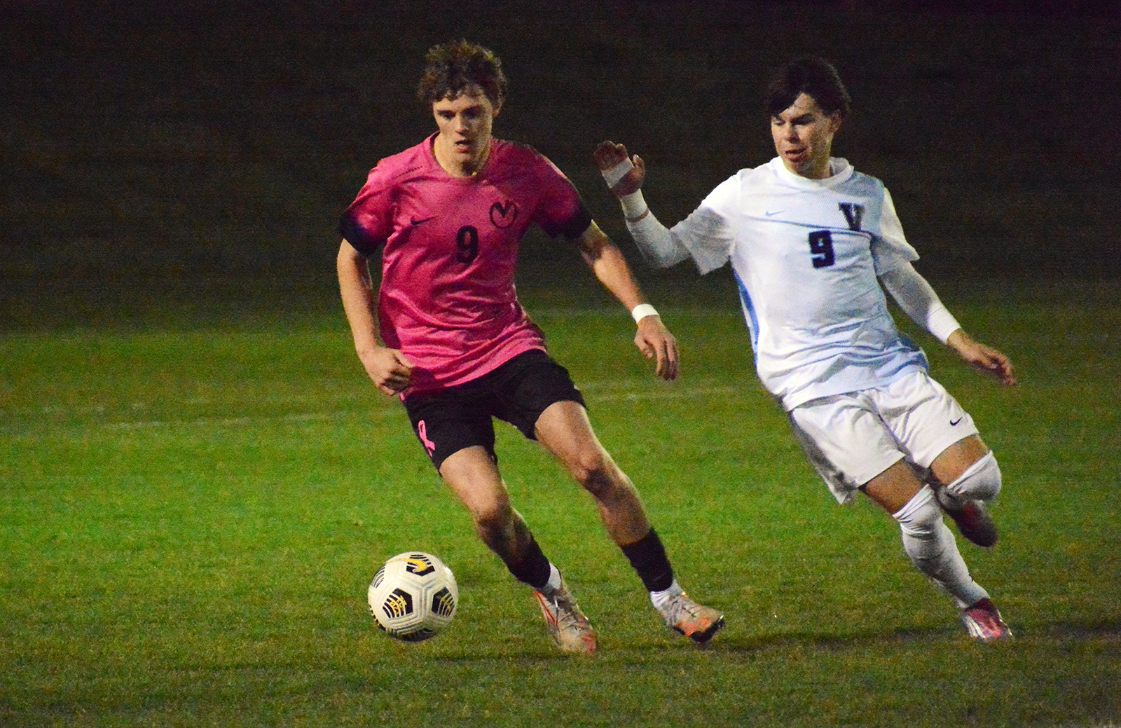 The Mustangs were able to counter the Eagles’ offensive pressure in the 33rd minute. Downing got a breakaway from nearly midfield and rocketed a shot past Natale for a 2-0 lead at halftime.